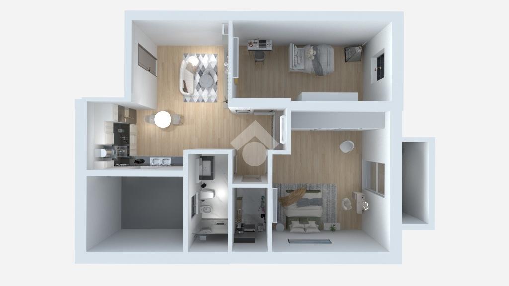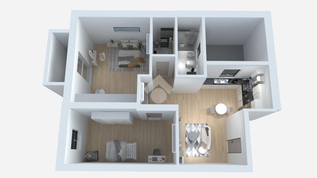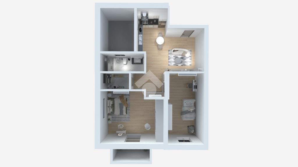 Dal portone d' ingresso si accede ad un soggiorno con angolo cottura, un bagno, una zona lavanderia e due camere da letto di cui una dotata di porta finestra che conduce direttamente al balcone, garantendo così una splendida illuminazione naturale.