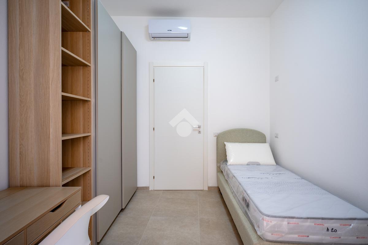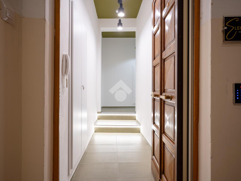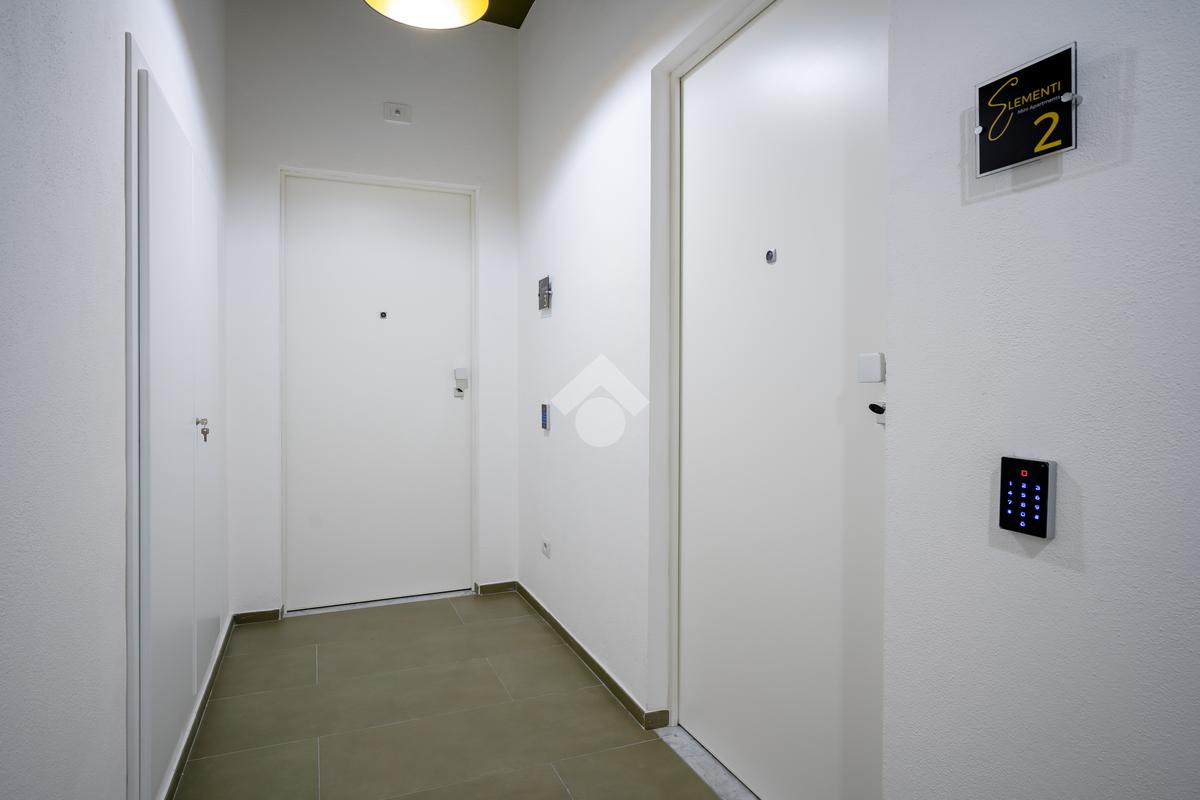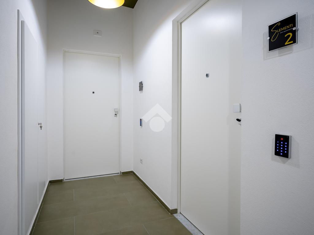 L’accesso agli appartamenti è garantito da ingresso smart con codice o badge, che conduce a un corridoio da cui si accede alle tre unità abitative.