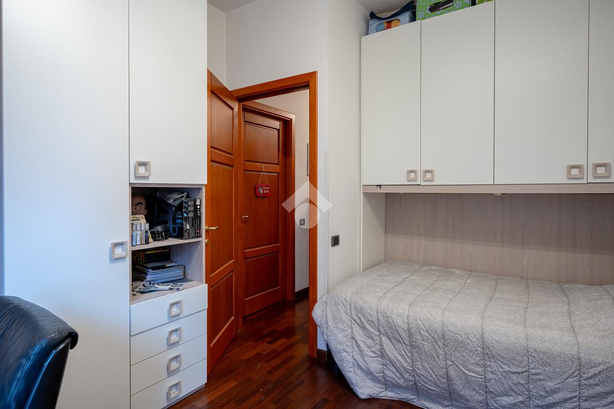 La zona notte, rifinita con parquet in vero legno, è composta da tre camere da letto (due singole e una matrimoniale) e da un secondo bagno finestrato con doccia, accessibili tramite comodo disimpegno.