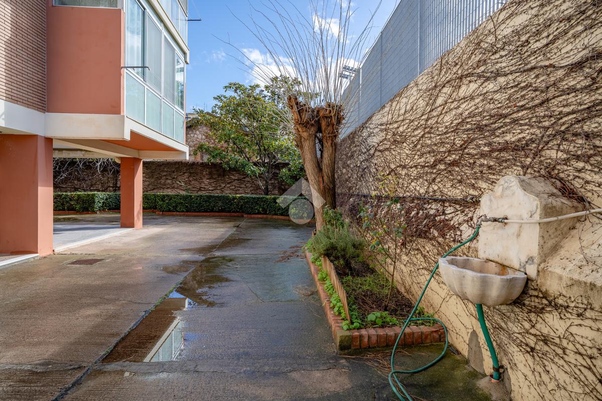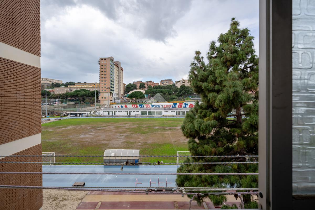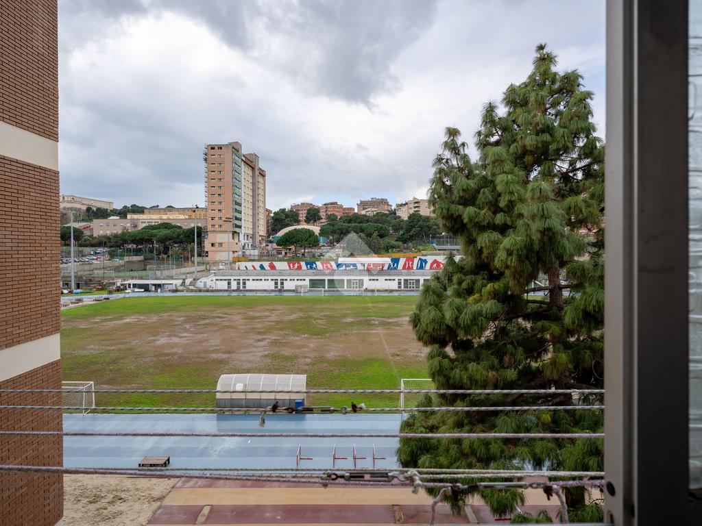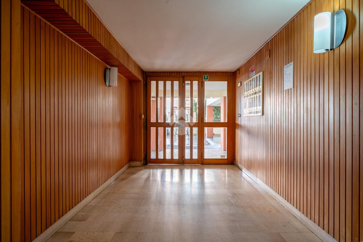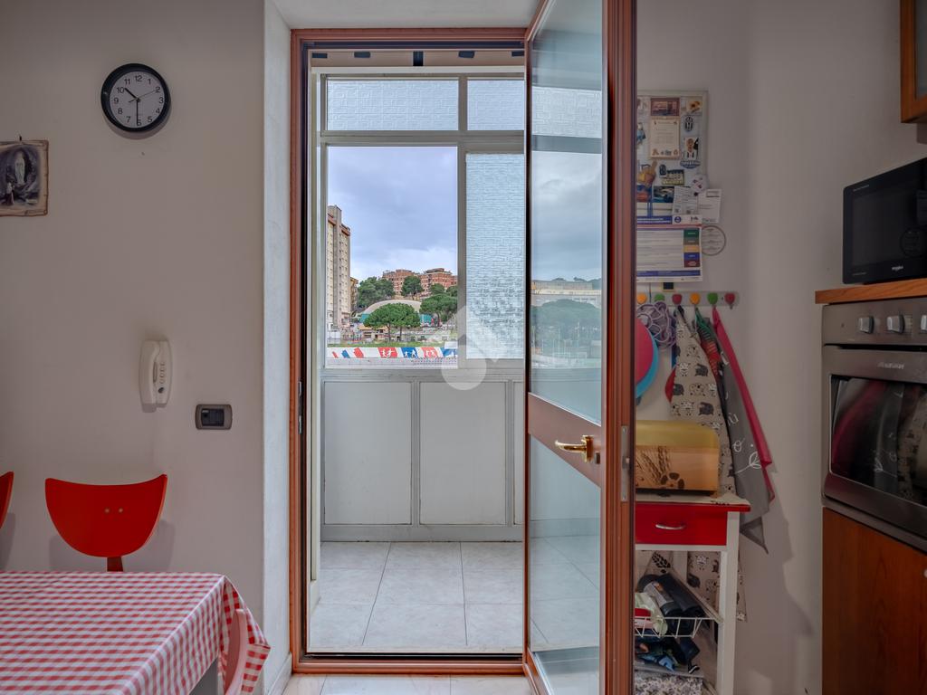 L’immobile si presenta ampio e ben distribuito: ingresso open space con elegante pavimentazione in marmo rosa, dal quale si accede alla cucina (marca Scavolini), separata da una comoda porta scorrevole in vetro e legno. Ampia veranda chiusa, attualmente adibita a zona lavanderia e dotata di lavandino con splendida vista aperta, senza edifici frontali, sui campi del CUS Cagliari. Completa la zona giorno un bagno finestrato con vasca.
